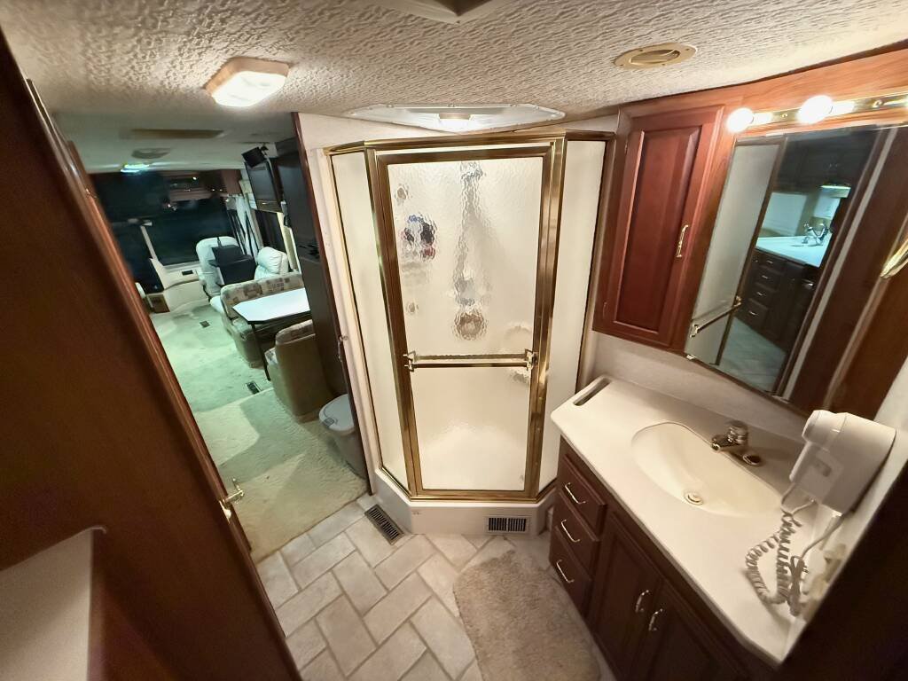 Powered by a Caterpillar C7 7.2L diesel engine delivering 330 HP, paired with a smooth Allison automatic transmission and rear-wheel drive, the Journey 39W offers exceptional performance and reliability, proven on multiple 2,000+ mile trips. The 7kW diesel generator, recently serviced, powers appliances off-grid, supported by a propane system for the stove, oven, and water heater. Additional upgrades include a new coolant pump, fully functional freshwater, gray, and black water tanks, and a serviced engine and furnace, ensuring this coach is ready for the road.
